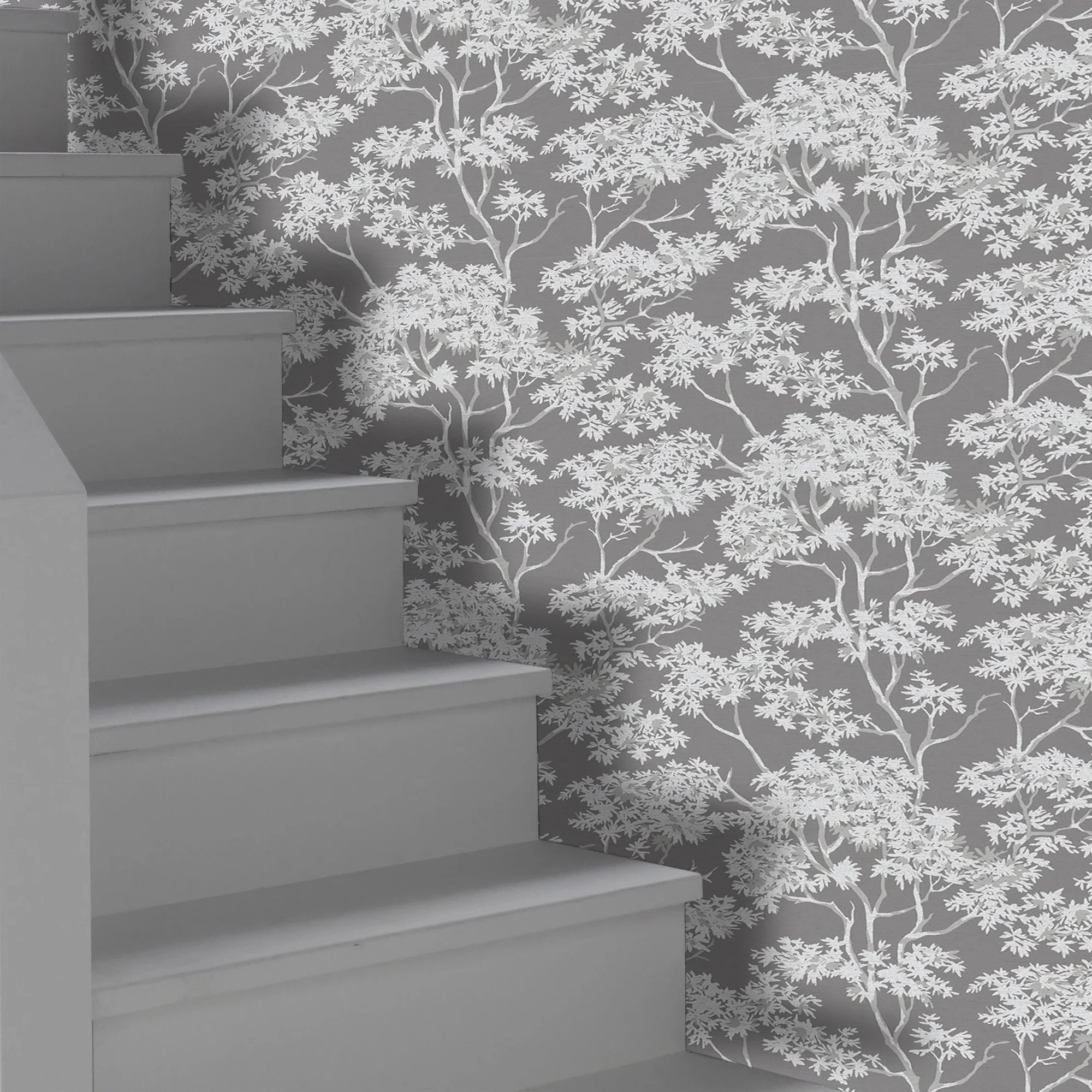 Charcoal Mica Effect Maple Tree Smooth Wallpaper For House wall