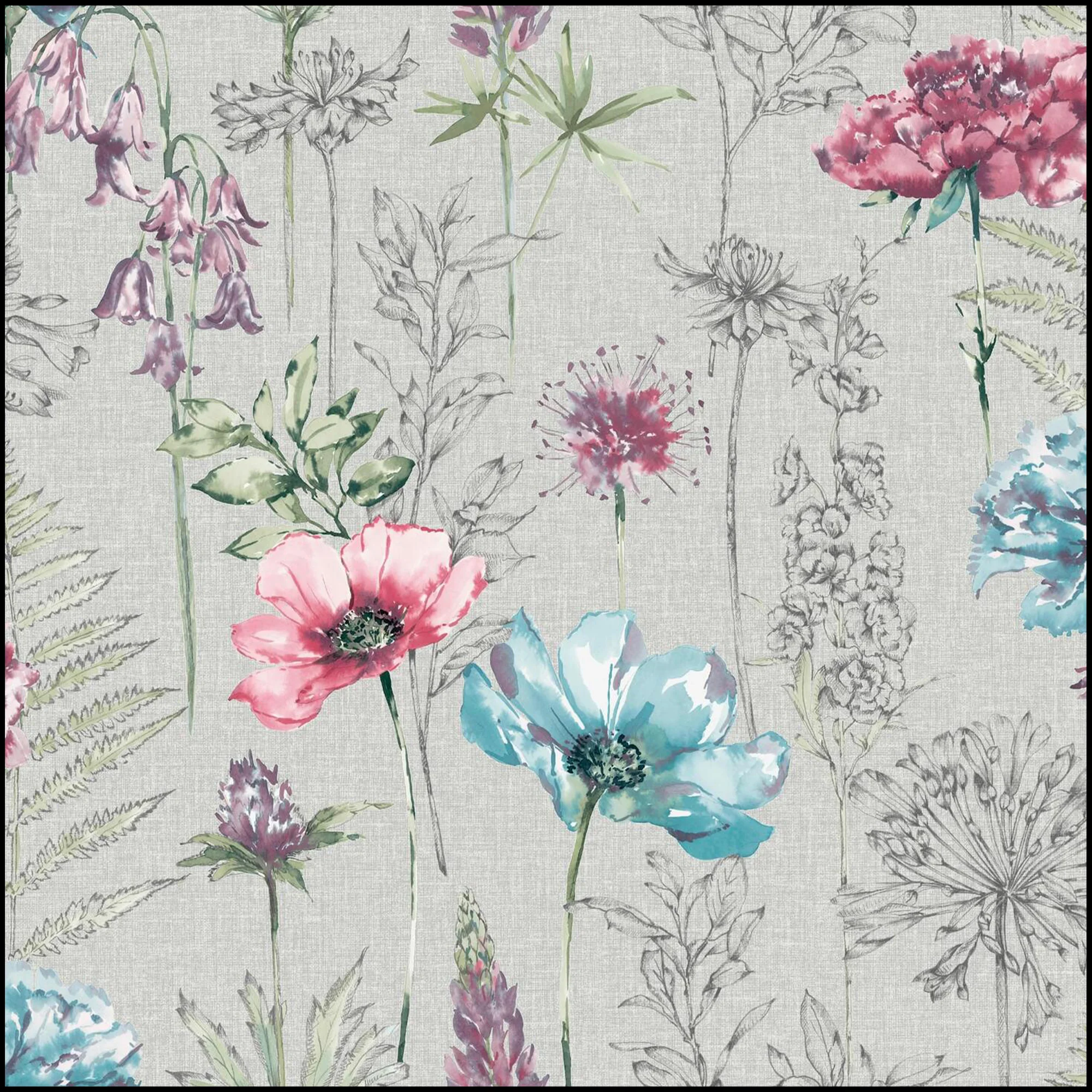 Grey Floral Sketch Wallpaper For Living Room