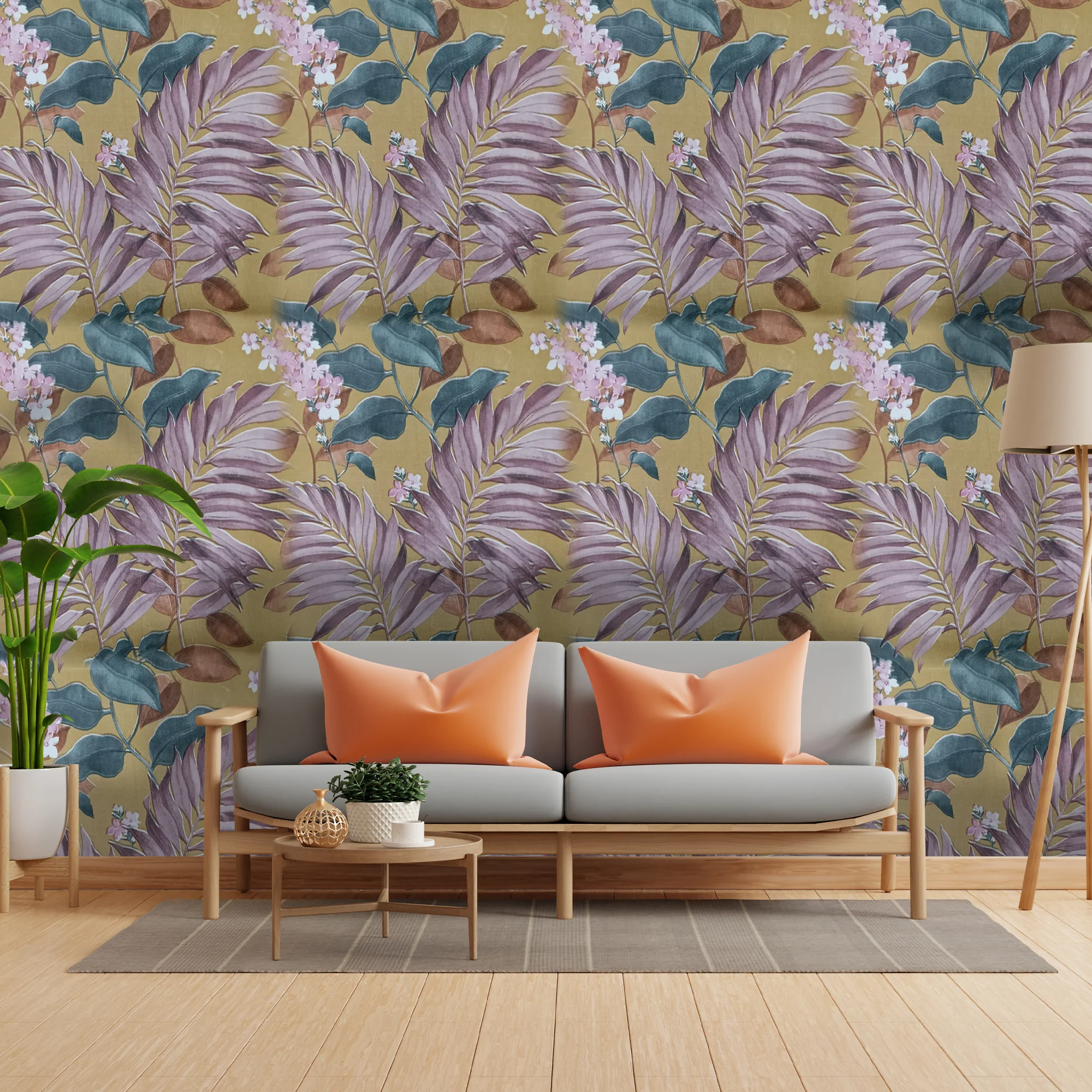 Charcoal Mica Effect Maple Tree Smooth Wallpaper For House wall